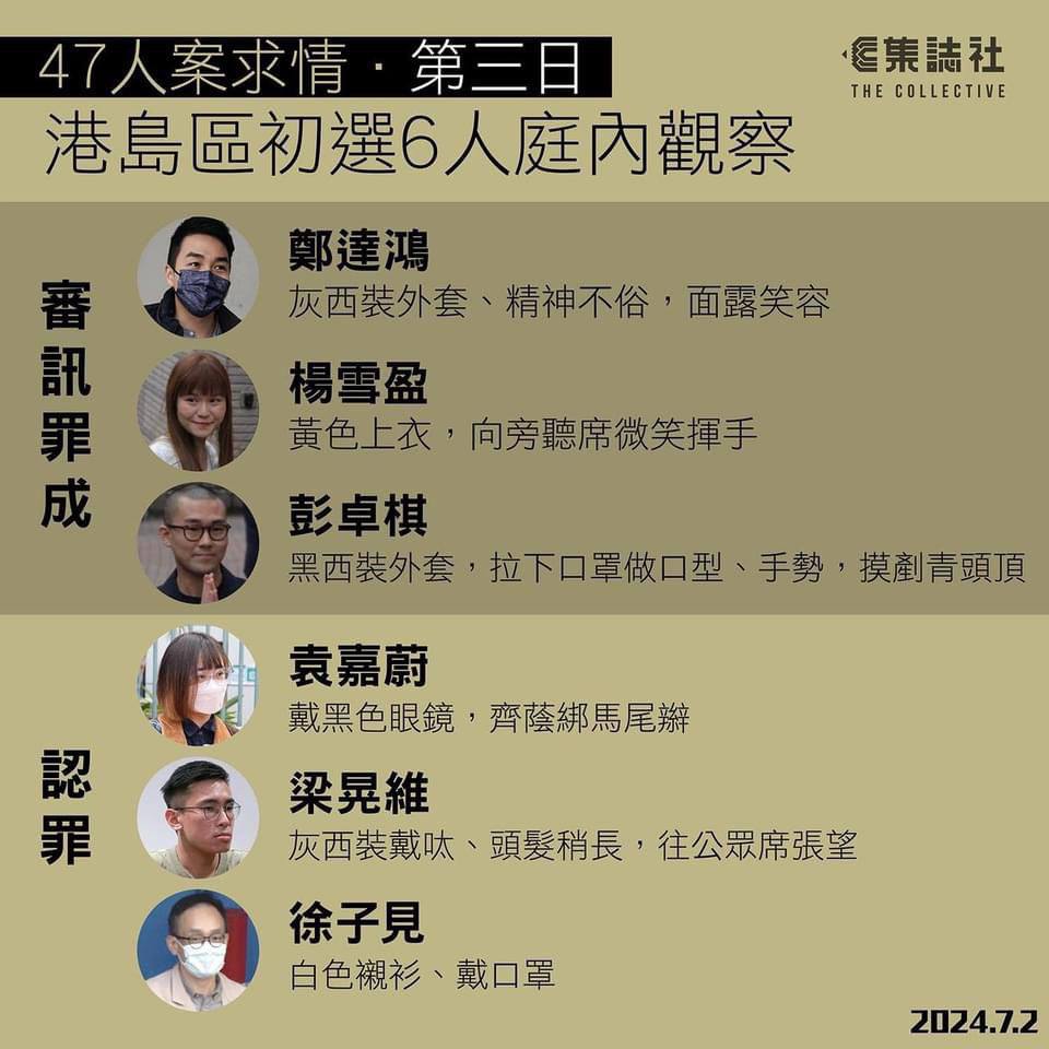 2020 年民主派初選引發 47人 案,最終 45 名民主派被控「串謀顛覆國家政權」罪成;今日(7月2日)初選港島區六名參選人開始進行求情。