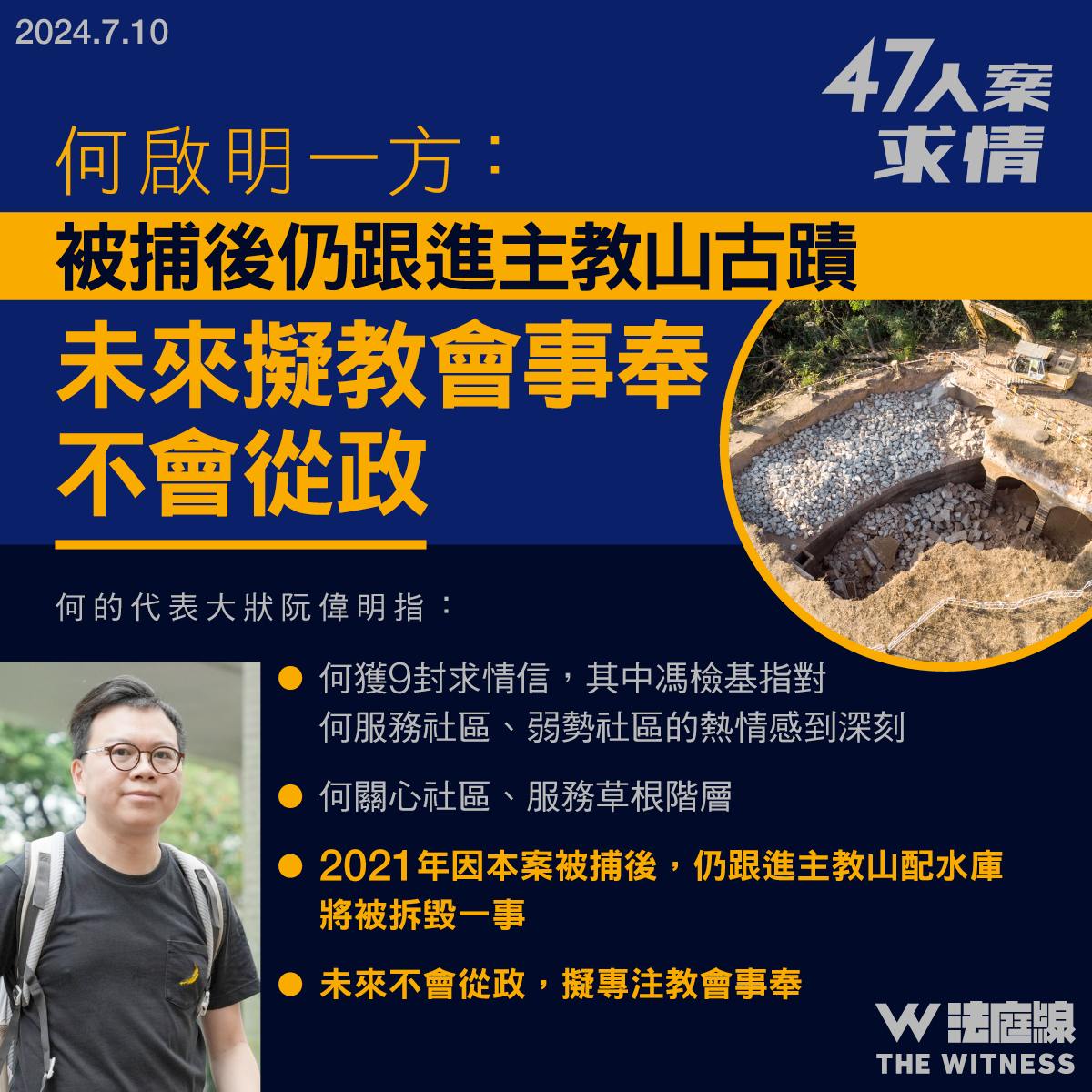 47人案求情|何啟明一方:被捕後仍跟進主教山古蹟 未來擬事奉不會從政