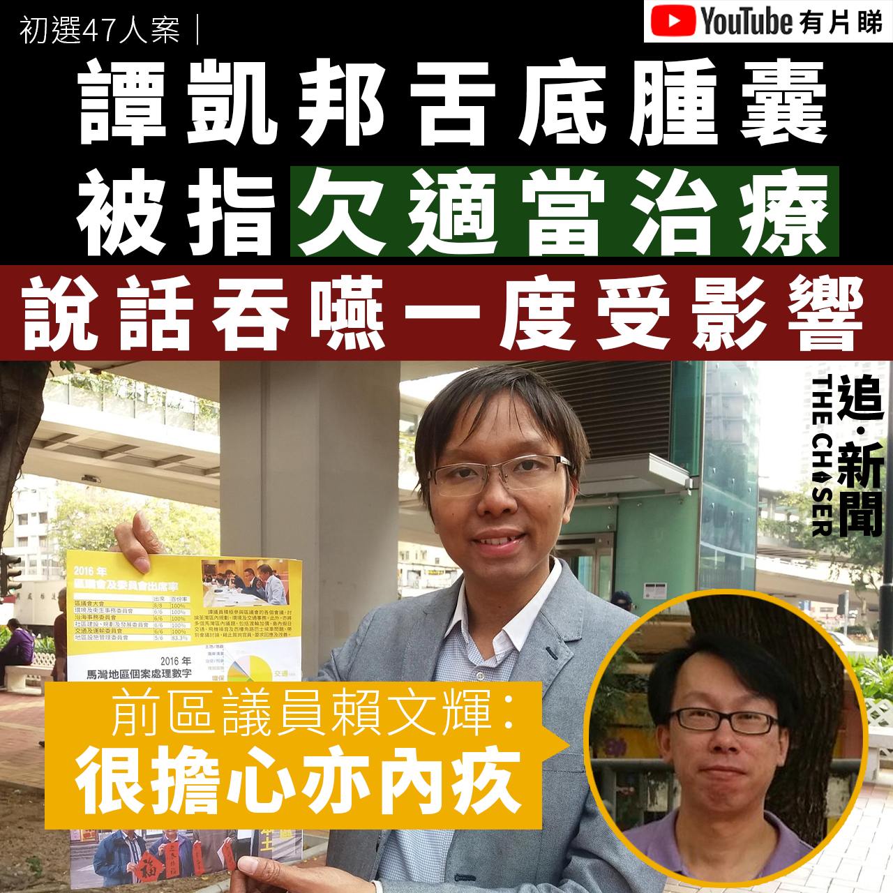 【初選47人案|譚凱邦舌底腫囊被指欠適當治療 說話吞嚥一度受影響 前區議員:很擔心亦內疚】