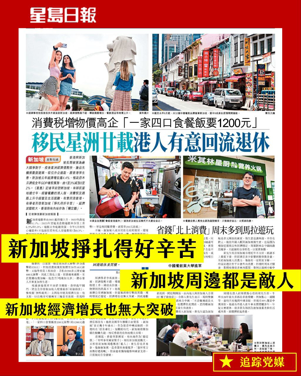 星島今日有篇奇文共賞,記者走去新加坡訪問一位香港移民,佢移民新加坡超過20年,而家話新加坡經營及生活困難,有意回港退休及買樓。