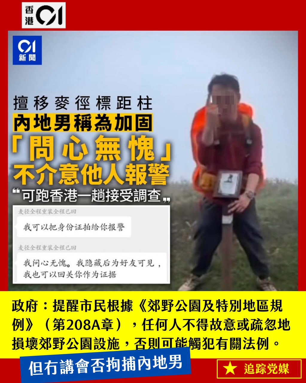小紅書流傳操普通話男子在大帽山移走標距柱,該男子後來在微信群組 「2025麥理浩徑徒步搭子群」承認此舉,強調因為見標距柱有鬆脫跡象,才將其拔出和加固。