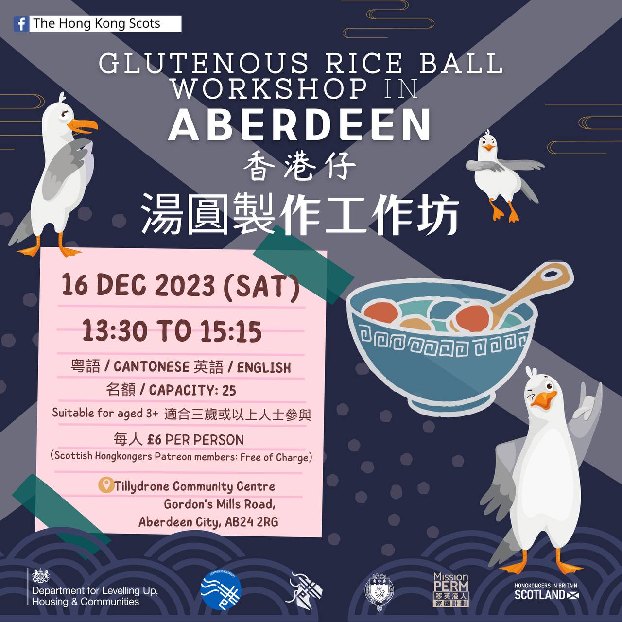 Ladies and Gentlemen, December is approaching rapidly! For Hongkongers, aside from Christmas, the Winter Solstice holds significant importance in December. In celebration of this traditional festival, characterized by family reunions and shared meals of glutinous rice balls, The Hong Kong Scots in Aberdeen are excited to invite everyone, including locals and the Hong Kong diaspora, to join our Glutinous Rice Ball Workshop. This event aims to not only explore the culinary traditions of the Winter Solstice, featuring glutinous rice balls and dumplings but also foster integration and adaptation of Hong Kongers to life in Scotland. It serves as a platform for cultural exchange, reflecting the rich tapestry of British cultural diversity.