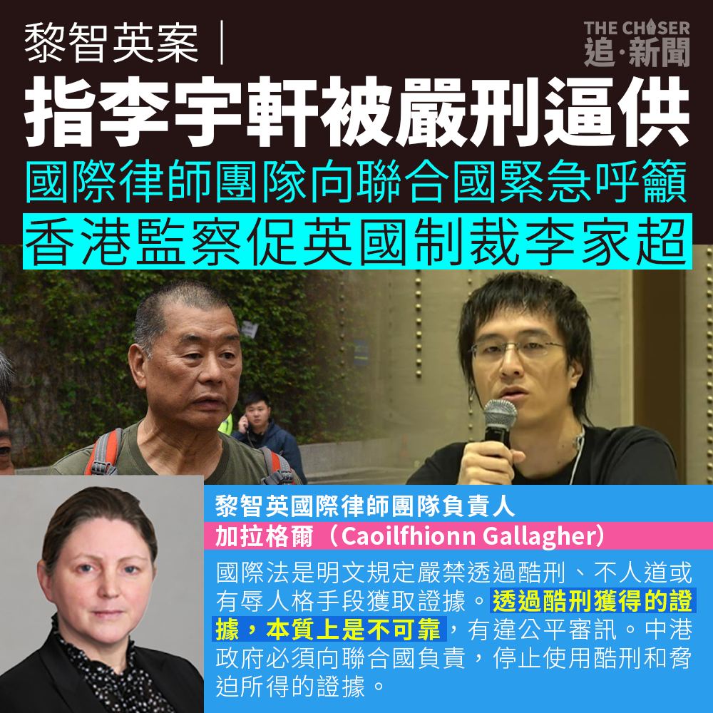 【黎智英案|指李宇軒被嚴刑逼供 國際律師團隊向聯合國緊急呼籲 香港監察促英國制裁李家超】