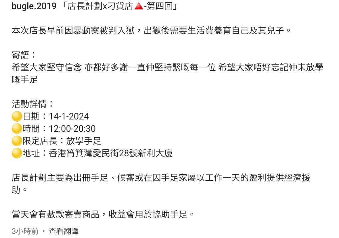 店長計劃主要為出冊手足、候審或在囚手足家屬以工作一天的盈利提供經濟援助。